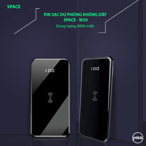 - Đáp ứng kỳ vọng của người tiêu dùng về một sản phẩm Pin sạc dự phòng giá rẻ mà vẫn đảm bảo tích hợp sạc không dây. Macstore24h cho ra mắt dòng sản phẩm Space - W20 với dung lượng pin 8000 mAh cho lưu lượng sạc được 2 -3 lần các dòng điện thoại thông thường.