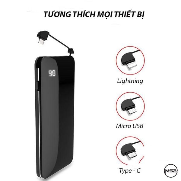 ☑ Dễ dàng bỏ túi hay mang theo với thiết kế mỏng chỉ 18mm. Dây rút kéo dài 30cm cùng tích hợp các đầu chuyển cho tất cả các dòng điện thoại Smartphone hiện nay Type C, Lightning, Micro.... Quý khách ra ngoài không cần mang theo Cable sạc vướng víu. Sử dụng dây rút tích hợp bên trong sản phẩm để sạc.