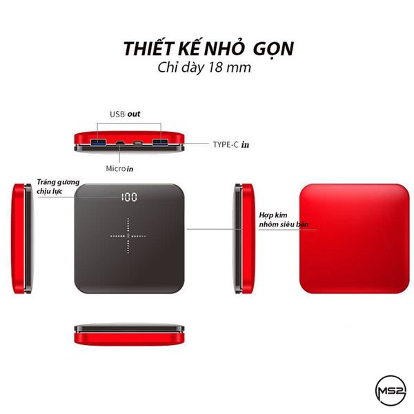- Dung lượng vừa đủ 8.000 mAh, sạc từ 2 - 4 lần các dòng điện thoại cao cấp