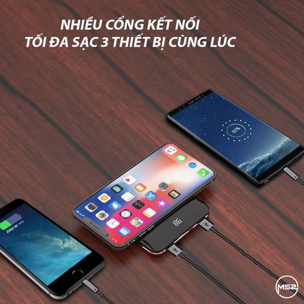 Note: Vì sản phẩm là pin dự phòng, Quý khách mua về sử dụng hạn chế vừa cắm input cho pin vừa đặt điện thoại để sạc không dây! Sẽ giảm tuổi thọ của pin và sản phẩm.