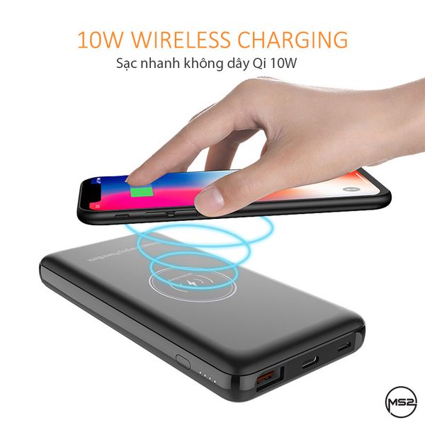 - Sạc nhanh Không dây Qi 10W DUY NHẤT và NHANH NHẤT trên thị trường. Vẫn được trang bị tính năng cực kỳ ưu việt đó là Sạc NHANH không dây 10W, đây có thể coi là điểm nhấn quan trọng nhất trên sản phẩm Pin dự phòng hiện nay vì dường như tất cả các sản phẩm Pin dự phòng đều chỉ tích hợp sạc không dây chuẩn Qi 5W ở tốc độ thường.