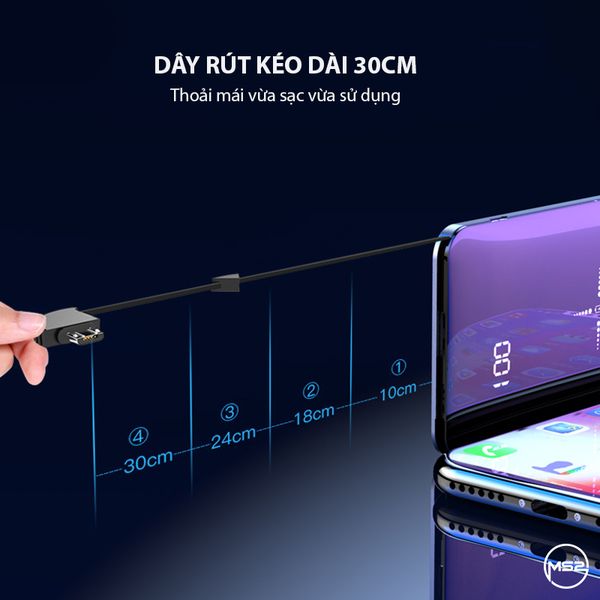 - Ouput: Cổng USB 5V-2.1A; Cable dây rút gắn kèm sản phẩm 5V-2.1A; không dây chuẩn Qi 5W.