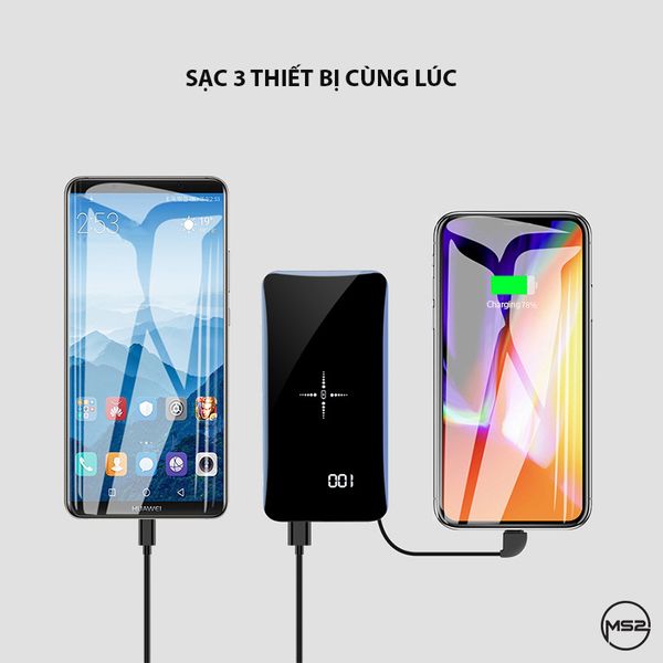 - Tính năng không dây chuẩn Qi, sạc xuyên ốp với khoảng cách lên tới 8mm (cao nhất trong thị trường pin sạc dự phòng không dây trên thế giới).