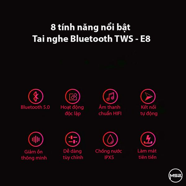 TAI NGHE KHÔNG DÂY CHỐNG NƯỚC TWS E8 - ĐỂ NGHE NHẠC KHI VẬN ĐỘNG VÀ DI CHUYỂN KHÔNG CÒN LÀ NỖI LO